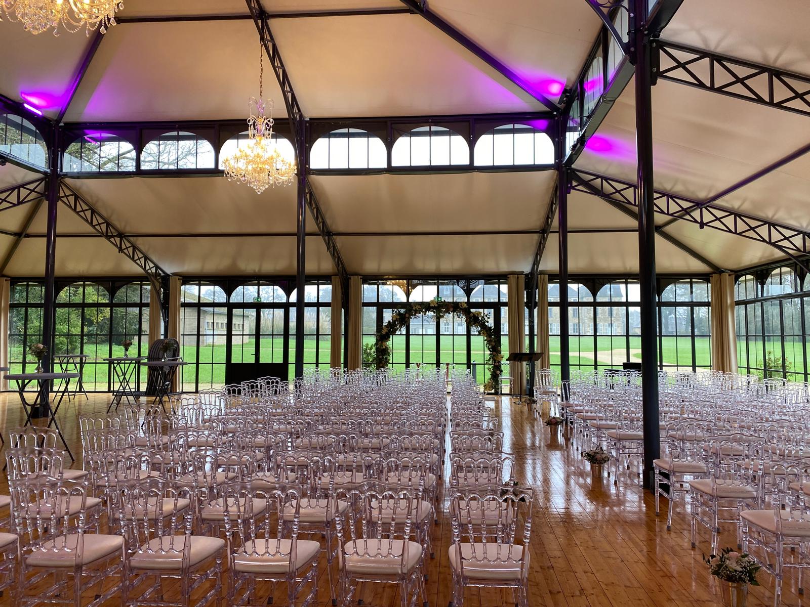 Le Château de Cucé dispose d’une Orangerie de 500 m², un espace de réception élégant et lumineux offrant une vue remarquable sur le château. Cet espace est parfaitement adapté pour accueillir votre réception de mariage :